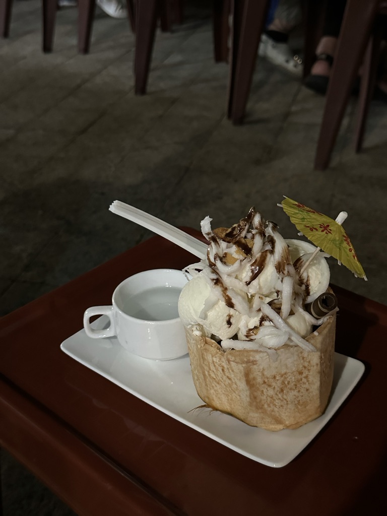 飯後小點心,邊吃椰子冰邊欣賞水舞~
