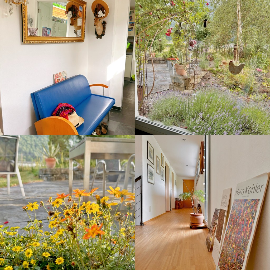 她說,丈夫去世後,家裡多出來的空間就開放成 Airbnb,讓旅人也能感受到她的生活。這棟三層樓的房子帶著鄉村與古典的氣息,木造結構、百葉窗與陽台,構成了我夢想中的瑞士小屋。